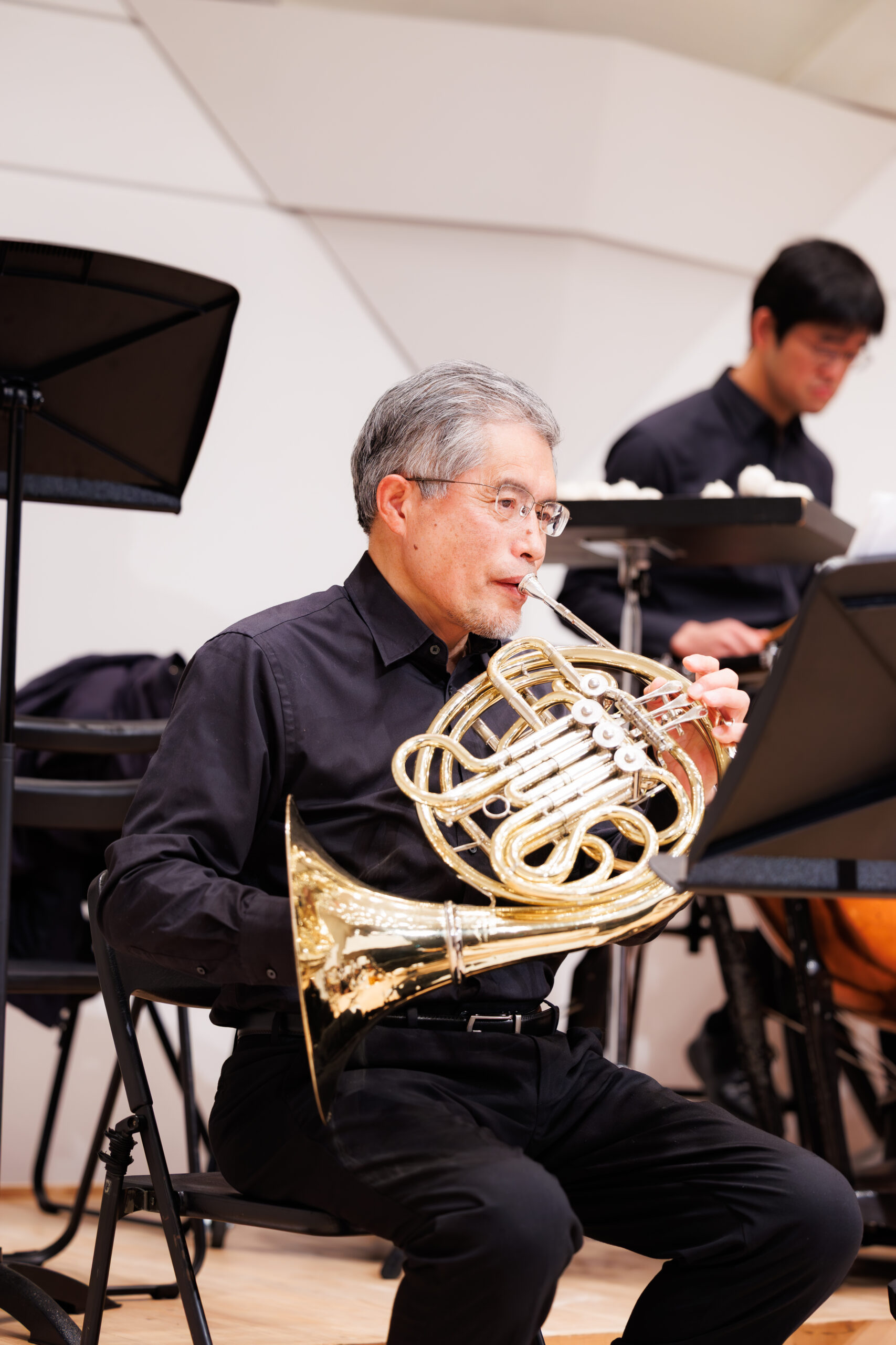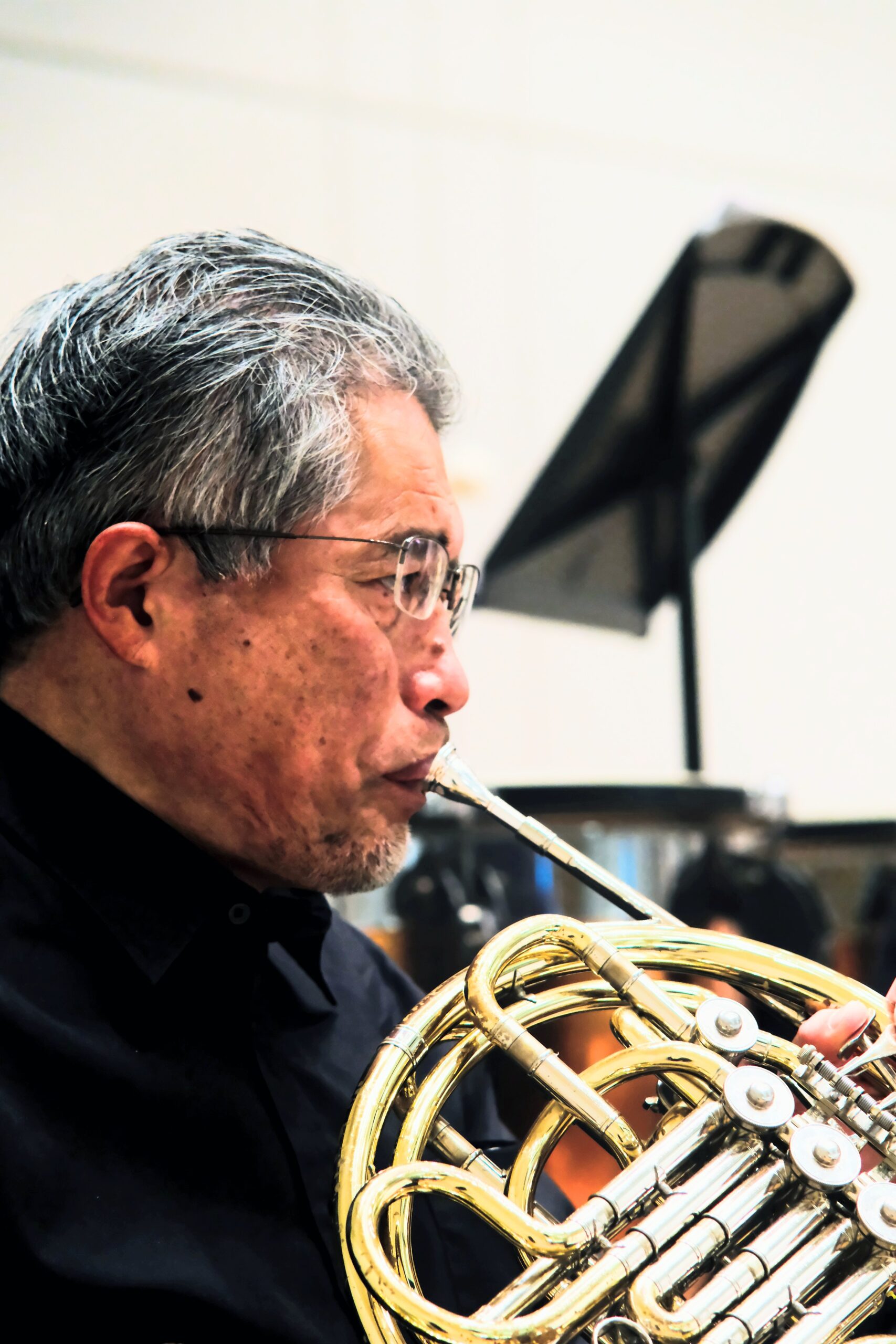 ▼ホルン演奏中の山潤さん 渋くてかっこいい