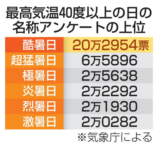 気象庁が4/17、最高気温が40度以上の日の名称を「酷暑日」と決め、今後、予報用語として使用すると発表しました