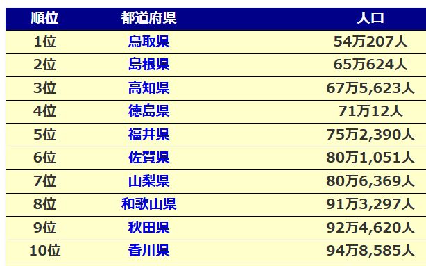 となっていて、大ざっぱに言えば、鳥取県は世田谷区の半分