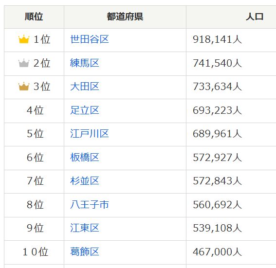 逆に世田谷区はデカ過ぎるので分割案とかありそうだけど、そうなると人口上位区がバリバリ分割になって(政治家にとって区長や区議のポストが増えるのは歓迎?)、簡単には済みそうもない