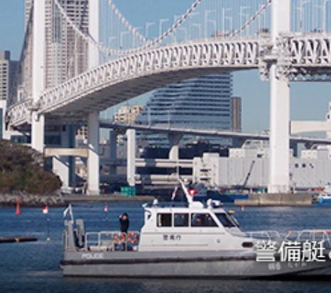 虹橋を支える柱の下にあるのが、湾岸署の警備艇(パトボート)置き場みたいです