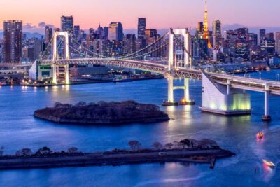 我が家のベランダに立つと、タワマン群のスキマから、虹橋(レインボーブリッジ)が見えます