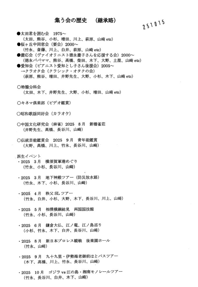 最も長い伝統のある「太田君を囲む会」は、1975年からですから半世紀の歴史
