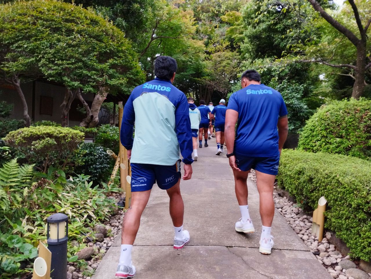 ▲高プリ日本庭園にガッシリした体格の外人多数 ラグビー選手か?