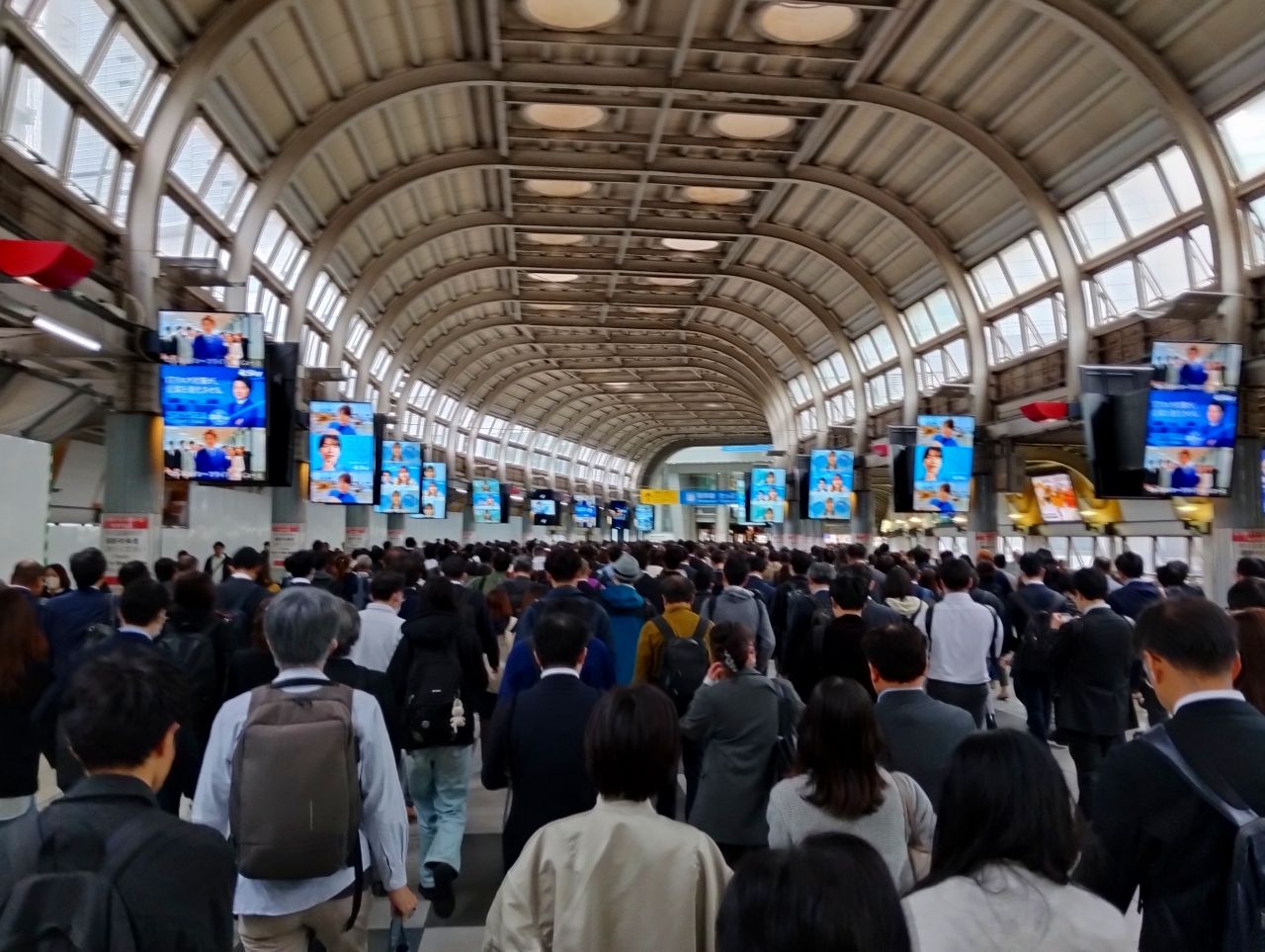 ▲駅はラッシュのピーク