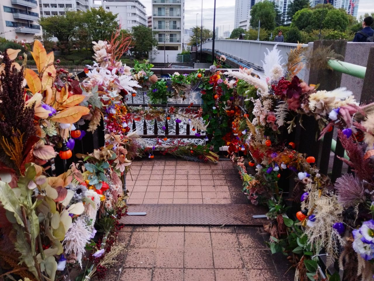 ▲遊歩道への階段にハロウィンの飾り付け