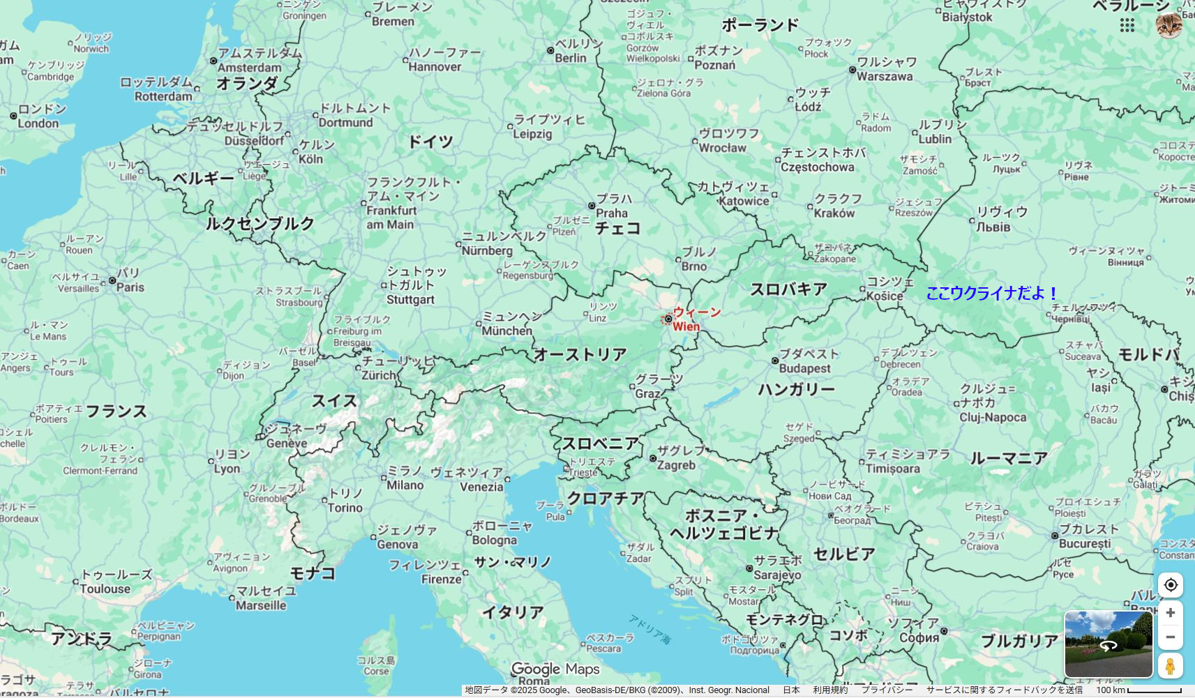 ▲ウイーンとウクライナの端は、400キロ(東京~大阪くらい)しか離れてない
