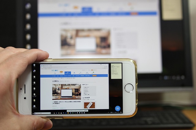 上の写真のように、スマホ画面にPC画面が表示されて、マウス操作もキーボード操作もスマホから可能です