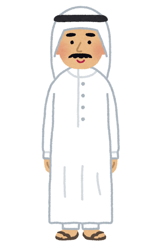 どこかイスラム教の国みたいで、作業者が白いひらひらした服を着ています