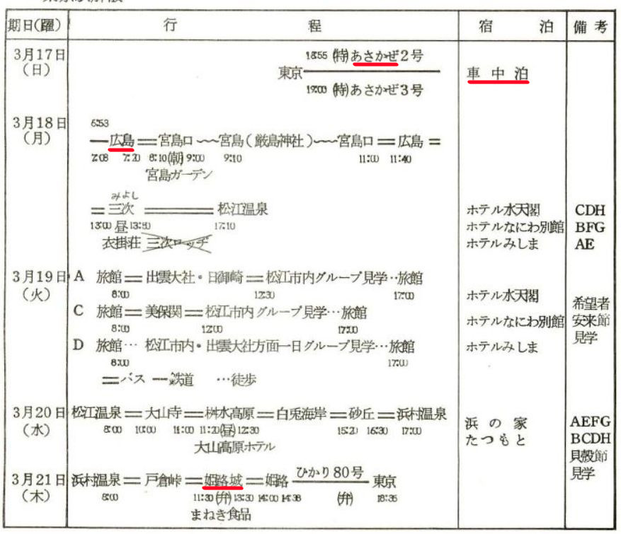 すでに新幹線があったはずなのに、在来線特急の夜行ブルートレイン「あさかぜ」で広島までとは、かなりの強行軍!
