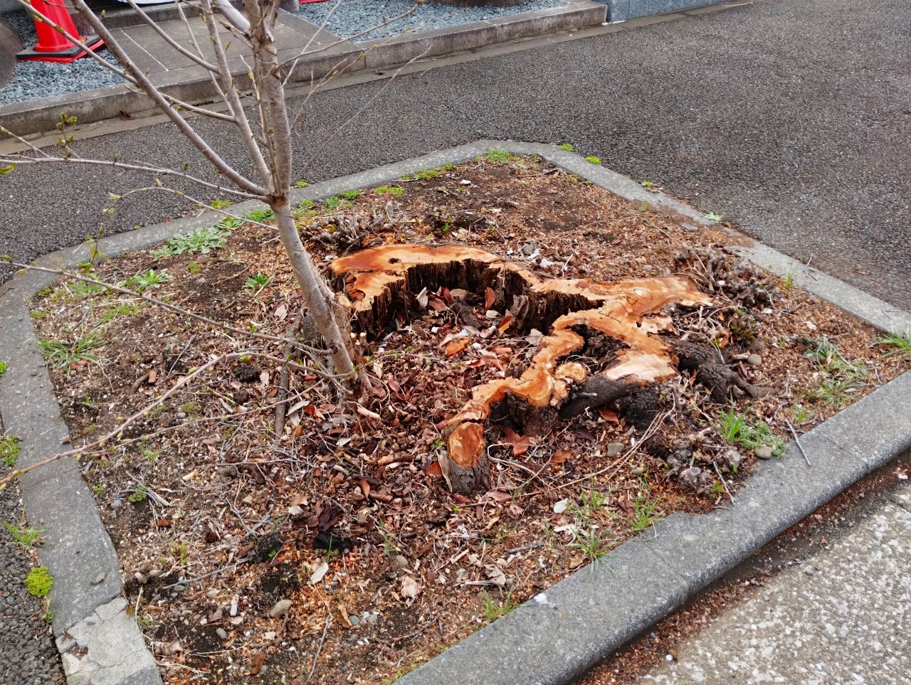そう言えば、3/27に「武蔵野を歩く」で訪れた多磨霊園には、根元から伐採された桜の巨木が多かったのですが、あれは倒木対策だったのかもしれません