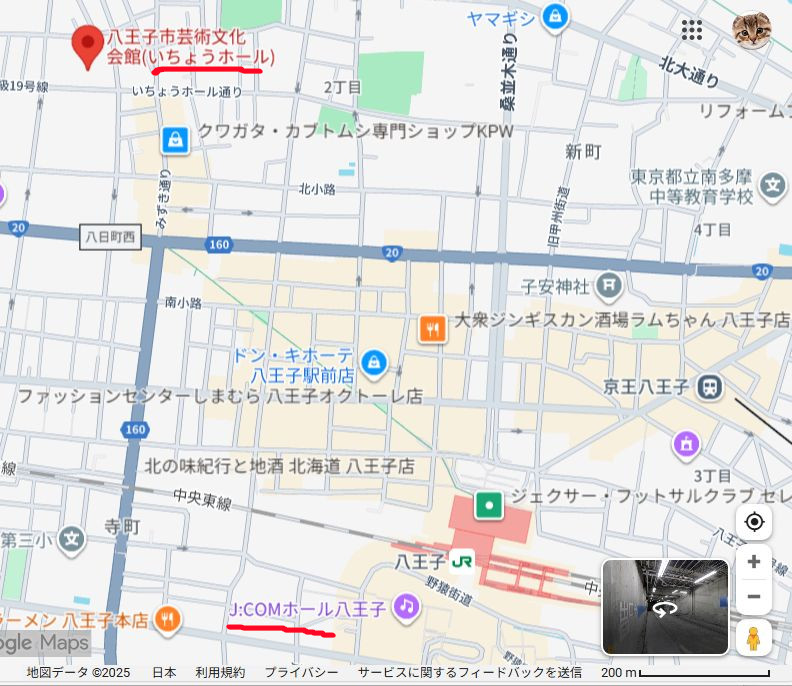 八王子駅から1キロ弱、たぶん歩いて10~15分くらい(バスは不要でしょ)