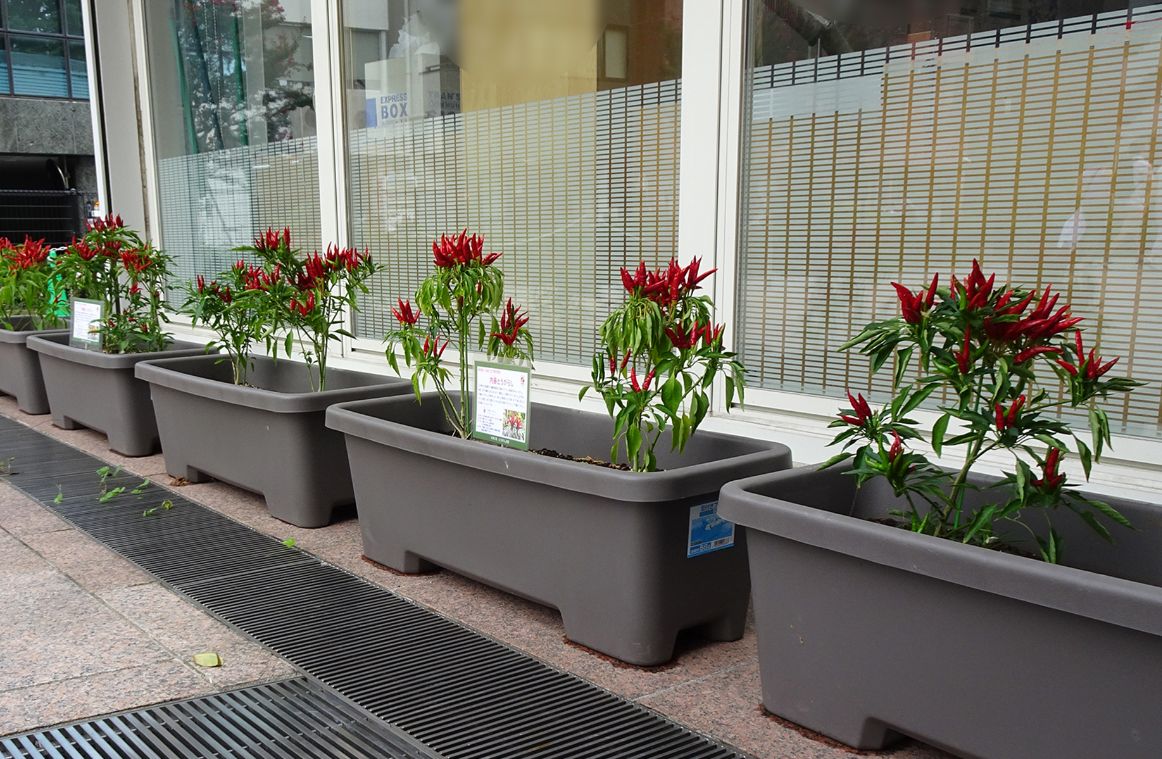 新宿御苑インフォメーションセンター入り口横で、新宿高校の生徒さんが育てた 内藤とうがらし を展示しているそうです
